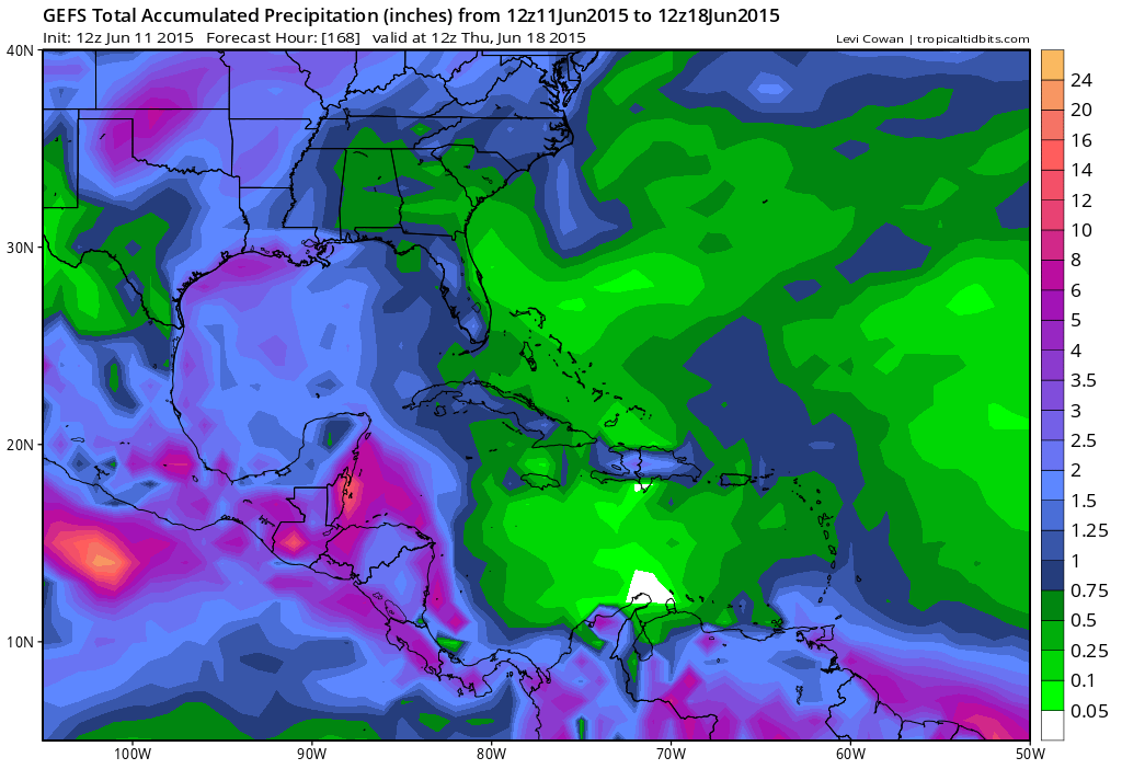 The 12Z GEFS (GFS Ensembles) agrees with the operational solution suggesting some heavy rainfall potential into mid next week.