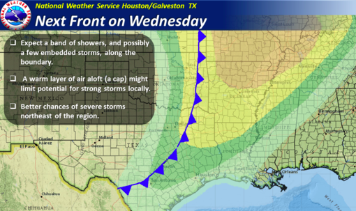 The SPC has an enhanced risk area surrounded by a large slight risk across the Southern and Central Plains E into the MS Valley, OH Valley and TN Valley for Wednesday. Damaging winds will likely be the highest threat however tornadoes will also be possible. The slight risk area covers NE TX with a marginal risk extending in to Central and portions of SE TX. With a strong CAP forecast to be in place, only a thin line of showers and storms will be possible with areas to NE having a greater chance of seeing some strong storms. Nice Fall weather returns Thursday and Friday ahead of the next storm system. Slight rain chances begin to enter the picture as early as Friday night into Saturday night ahead of the next storm system Sunday-Tuesday.