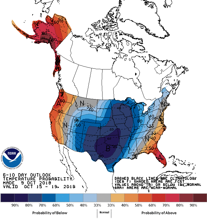 The afternoon Updated Climate Prediction Center temperature Outlook that extends into the weekend after next suggests below normal temperatures are possible across our Region.
