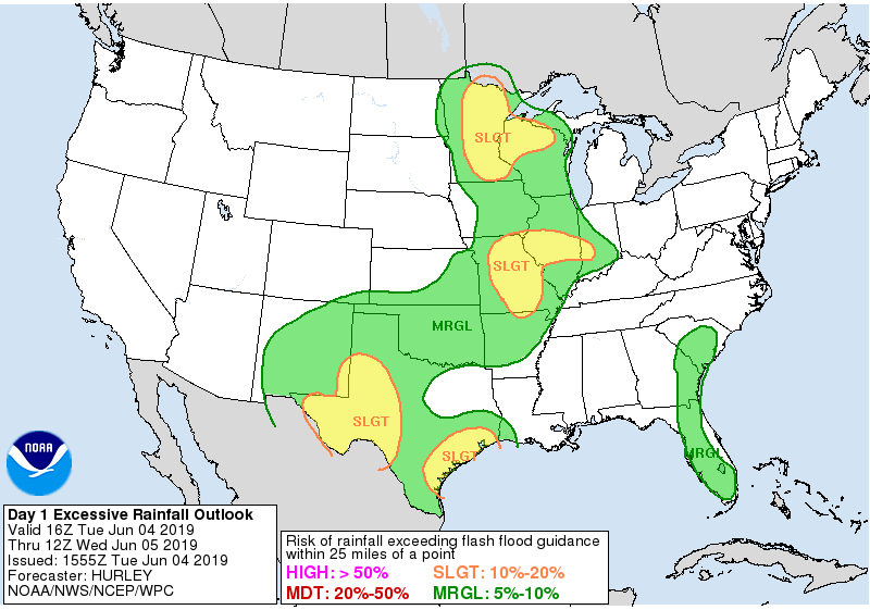 The WPC also has a Slight Risk for Excessive Rainfall for the remainder of today and tonight. Moderate Risk still continues for tomorrow.