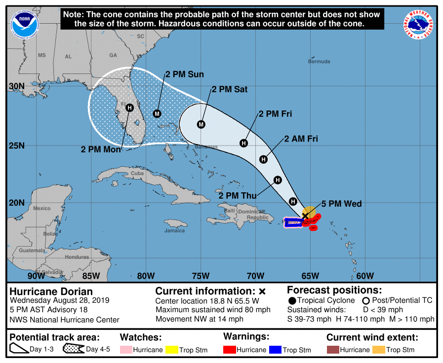 08282019 Dorian 5 PM Track 204641_5day_cone_no_line_and_wind.png