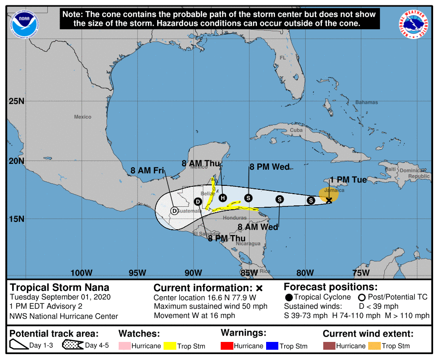 Tropical Storm Nana forms in the Central Caribbean Sea. No threat to Texas at this time.