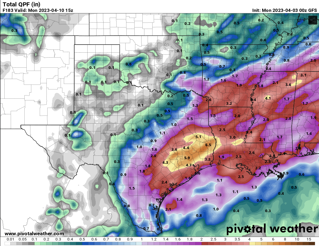 NAM this morning has the front making it to the coast, then backing up just S of Hwy 1*5 on Friday. We'll see how the impulses ride over the front.Stratton20 wrote: ↑Mon Apr 03, 2023 3:06 am Doctormu guess we will just have to see where the front stalls and if it wobbles north or south any, that can greatly change where the heaviest rainfall may be focused, not something the global models can depict well, guess will see what the short range models show in a few days