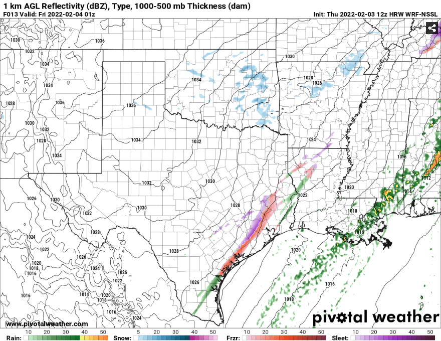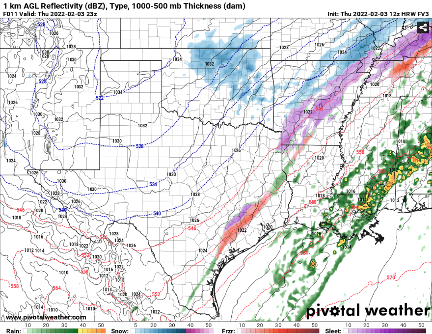 Yes,the big band of frozen precip over central and north Texas right now is the band that's suppose to move through later today.We'll have to watch and see if it dies out or not before getting here.