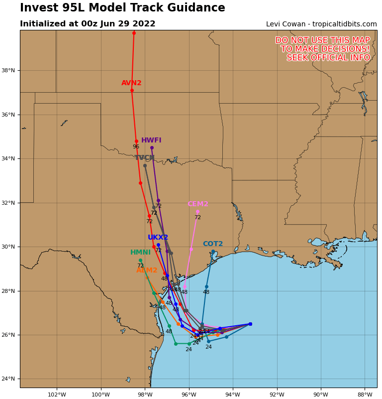 Stratton20 wrote: Tue Jun 28, 2022 8:15 pm 00z Tropical Models, most clustered around a landfall just to the west of matagorda bay late thursday which would be excellent news for SE Texas