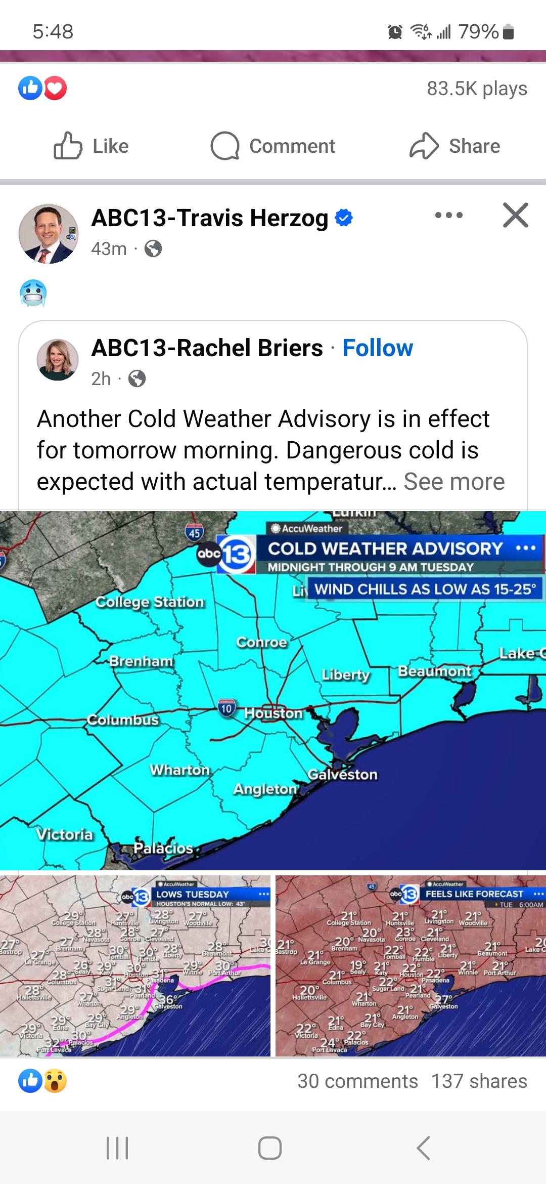 Brazoriatx979 wrote: Mon Jan 06, 2025 5:50 pm This kind of stuff is annoying as hell...why do you put the word DANGEROUS COLD? Come on man, there is nothing dangerous about lows 30's to mid 20's..this is why I hate tv mets..it's more hype then anything