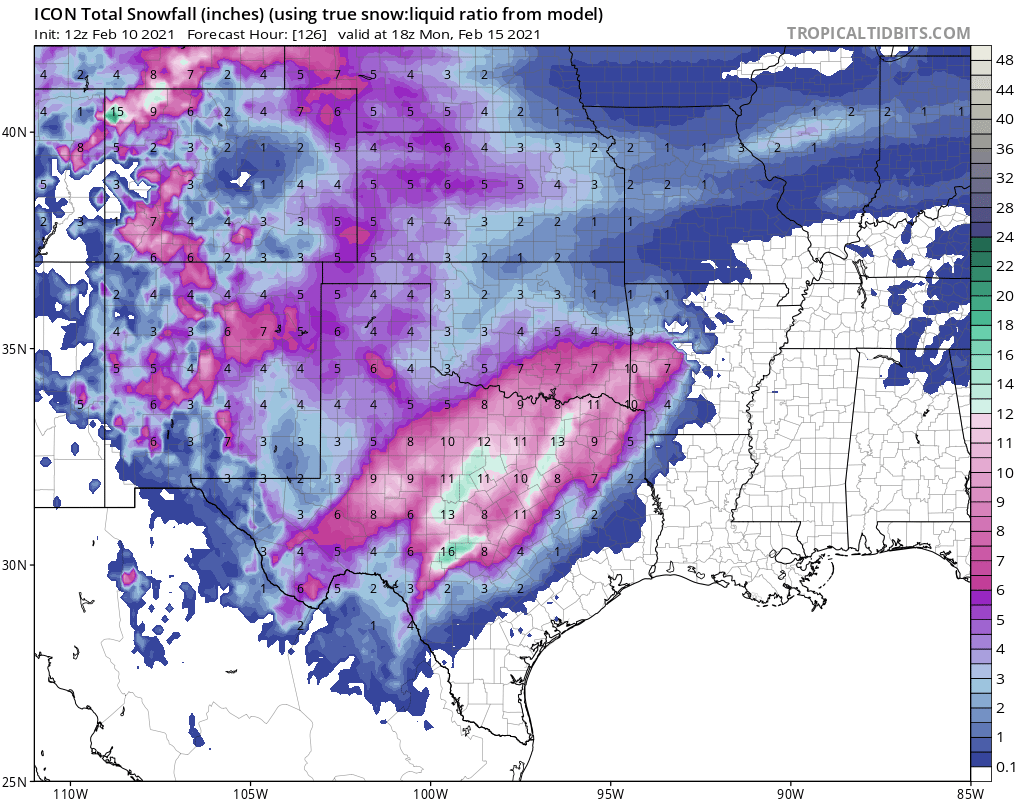 txsnowmaker wrote: Wed Feb 10, 2021 8:09 am Umm... this is looking to be much more than a freezing rain/ice event for Houston if the latest GFS comes to pass. Around a foot and a half of snow for the city of Houston. Incredible.