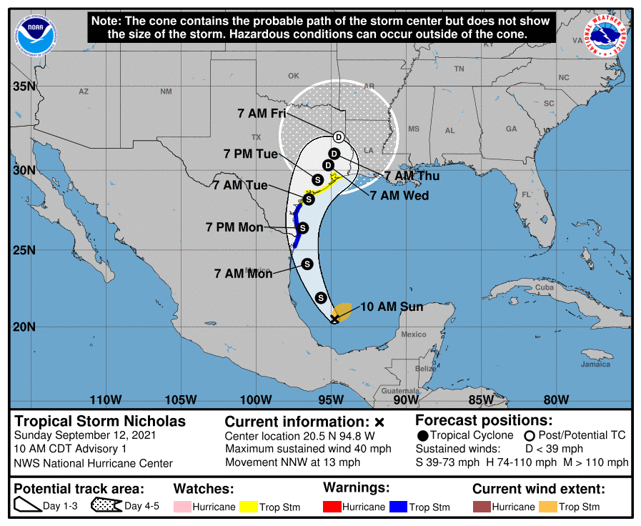 advisories are being initiated on Tropical Storm Nicholas, the