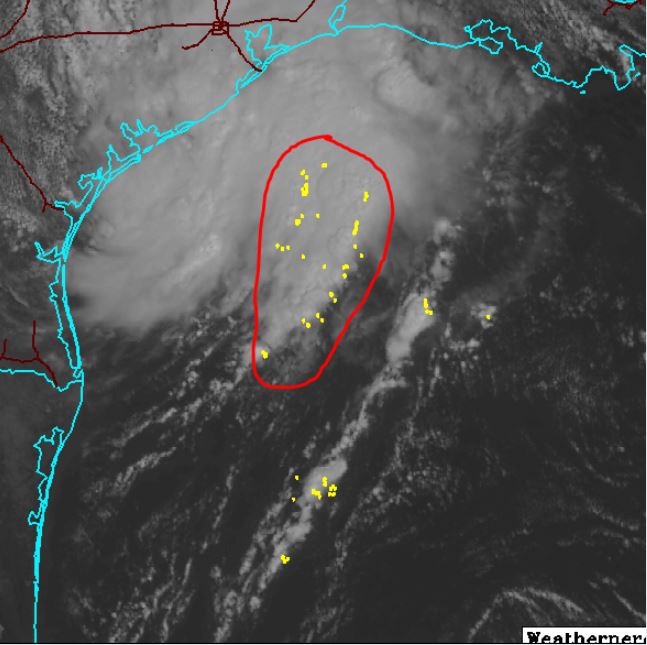 Basically due south of Freeport/Lake Jackson, correct? I'm just trying to get a bead on any directional movement with the center. At times, it appears like it's meandering its way slight W of NW but I believe radar returns have an illusion effect to make it seem so.