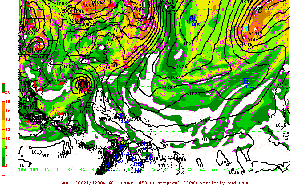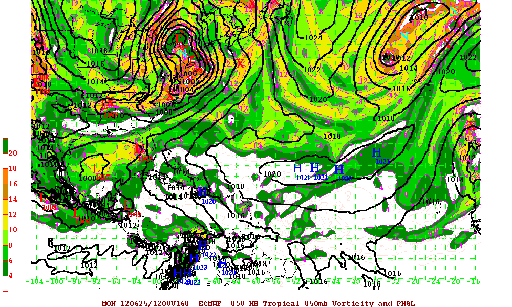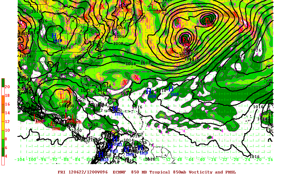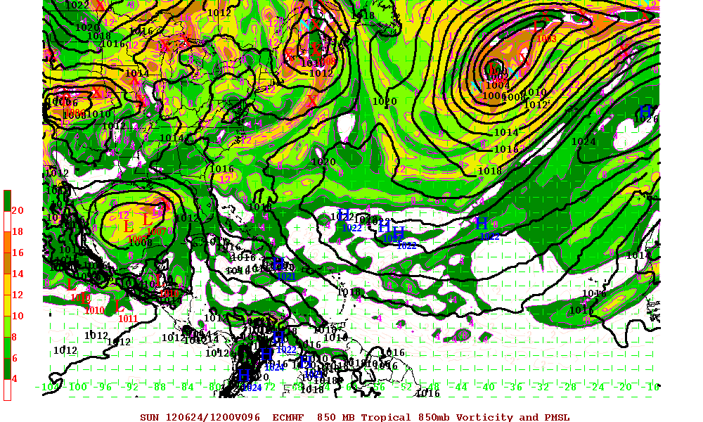 The Euro tracks the low pressure NW through the Yucatan Channel heading NW as the EC Ridge remain in control...