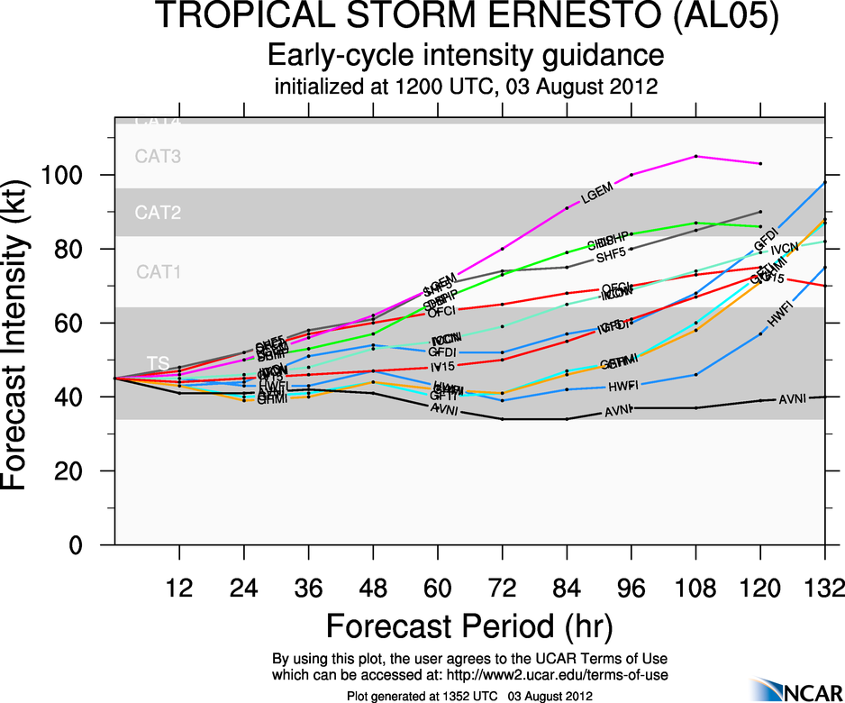 CONSIDERABLY AND SOME MODELS KEEP ERNESTO ON A MORE WESTWARD