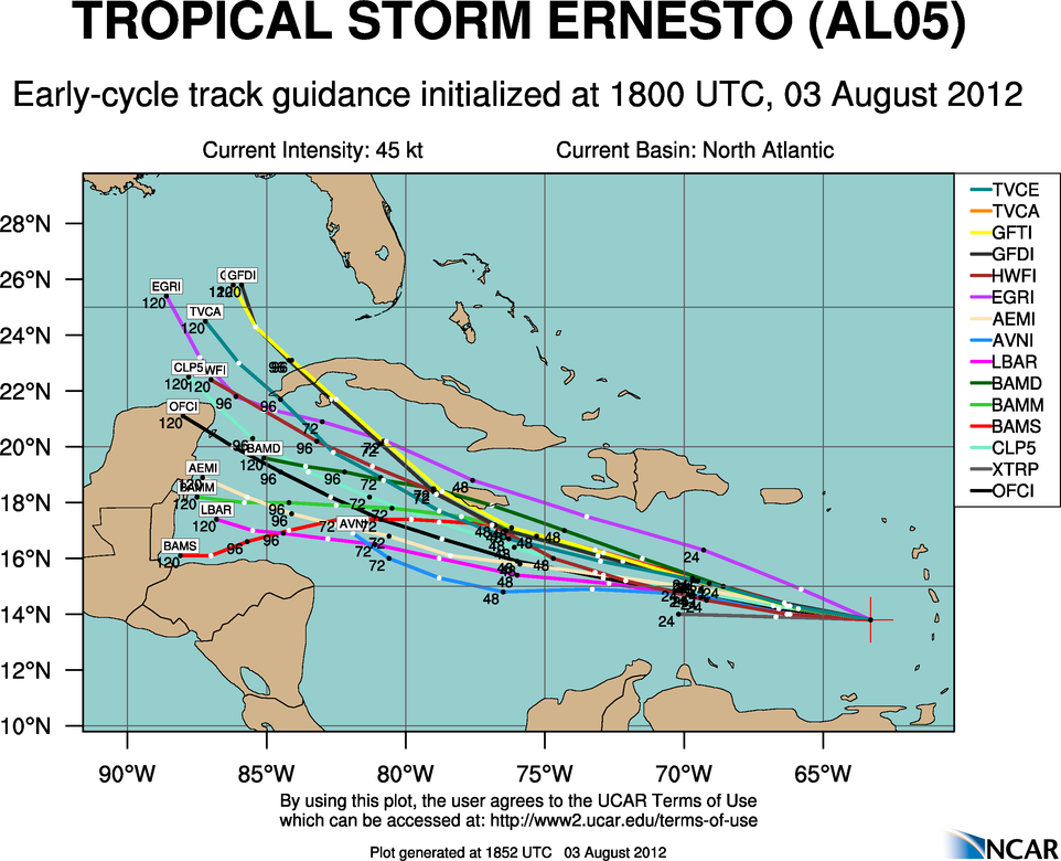 MOST OF THE TRACK GUIDANCE IS IN PRETTY GOOD AGREEMENT THAT ERNESTO