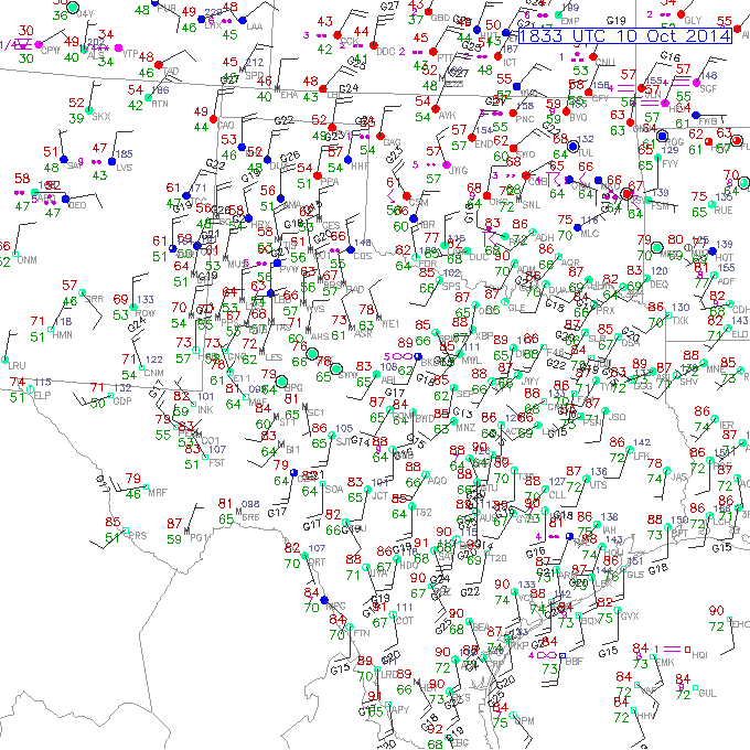 The cap should erode as the line passes the Austin area in the morning around 12Z. Tomorrow could be rather wet and perhaps a bit chilly N of the front wherever it eventually stalls out. Below is the current surface analysis.