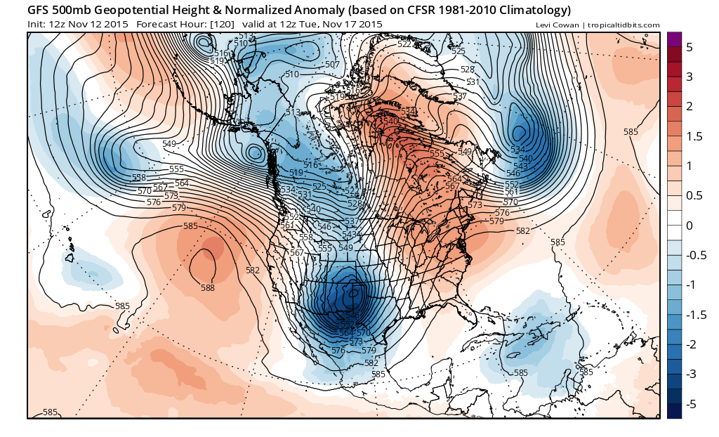 The afternoon Updated QPF is 'sniffing' out another potential heavy rainfall and severe episode later this weekend into early next week. Notice the Pacific NW QPF is showing some 16+ inches which as these powerful bowling ball upper lows persistently dropping South into an ever deepening Western Trough, look for powerful storm systems to organize over New Mexico and NW Texas possibly extending throughout the remainder of November into early December...at least.