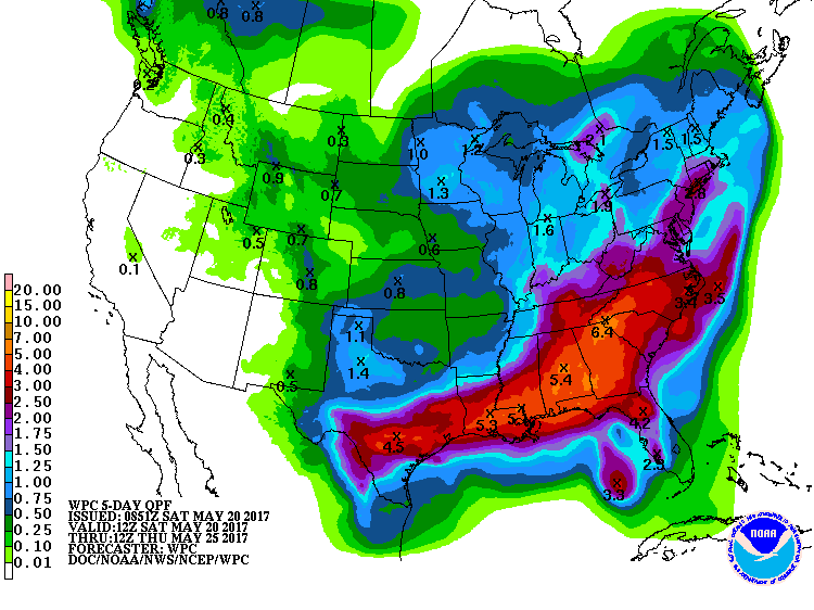 to 1.7 inch range (near 75th percentile for mid May)...lower to