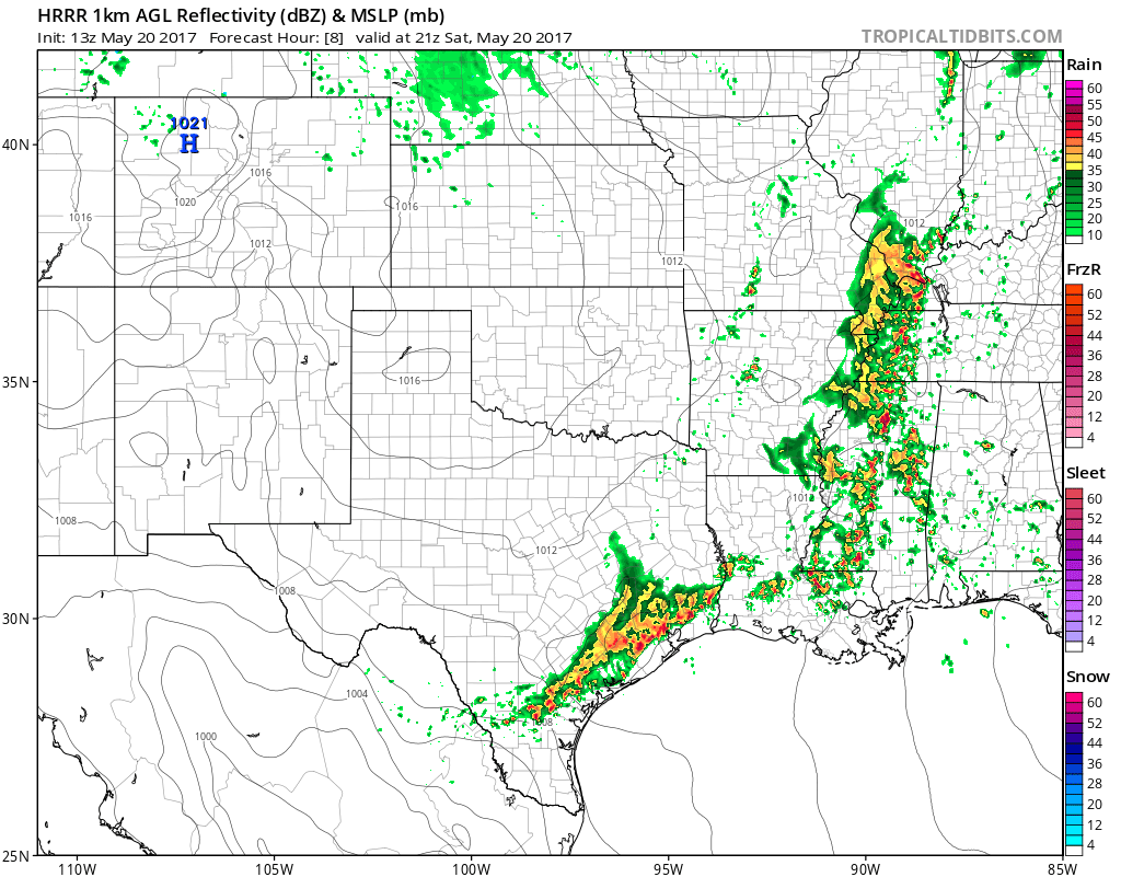 Looking at the 13Z HRRR, the best chance of showers and storms arriving later this afternoon into the early evening hours. It is also noted via MIMIM that a strong surge of deep rich tropical moisture from the NW Caribbean is moving NW into the Gulf of Mexico suggesting more tropical juice of our Region that may coincide with the arrival of the secondary strong front on Monday into early Tuesday.
