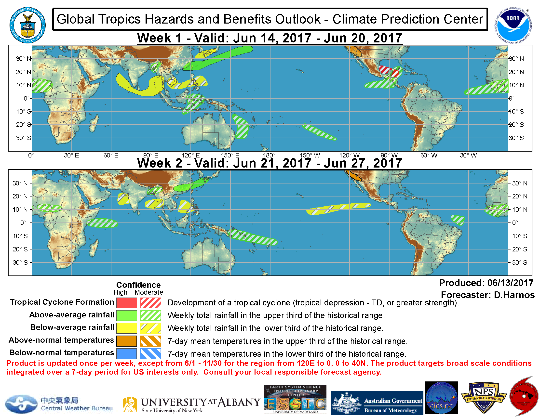 Tropical Weather Outlook NWS National Hurricane Center Miami FL 800 AM EDT Tue Jun 13 2017 For the North Atlantic...Caribbean Sea and the Gulf of Mexico: 1. A broad area of low pressure is expected to form over the western Caribbean Sea or Central America late this week or this weekend. Some gradual development of this system is possible thereafter while it moves slowly northwestward. * Formation chance through 48 hours...low...near 0 percent. * Formation chance through 5 days...low...20 percent. Forecaster Cangialosi