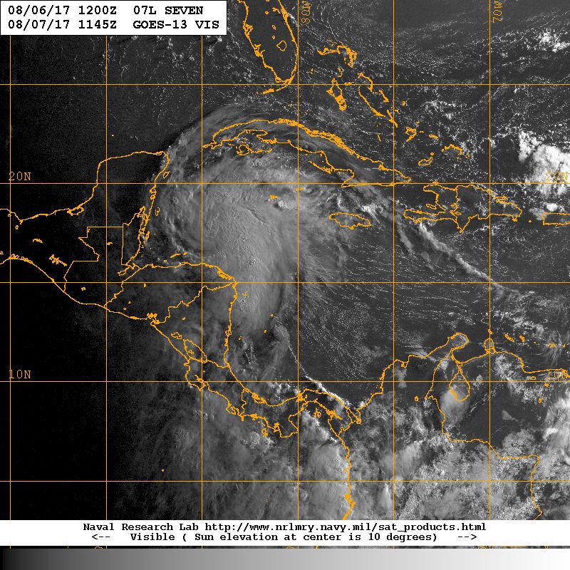 Tropical Storm Franklin strengthening with sustained winds of 50 MPH. Early morning first Visible Imagery suggests there main be some rapid intensification possible before reaching the Yucatan Peninsula.