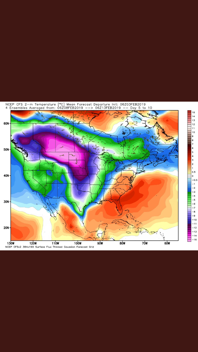 Watch the forecast trends. Do I believe the raw 2 meter temperatures are too warm? Possibly. I've seen this play out too many times in the 5 day forecast in the MOS/MAV/MEX and even the MET via the NAM Mesoscale model. This pattern is different in that our source Region is a lot colder than it has been and the air across Eastern Montana/Eastern Wyoming much colder too. Fine tuning of our sensible weather will continue throughout the week.stormlover wrote: ↑Mon Feb 04, 2019 10:50 am so strain ur saying it could be much colder this weekend than whats forecast right now?