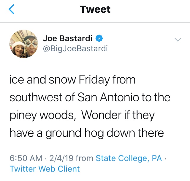 redneckweather wrote: ↑Mon Feb 04, 2019 7:55 am Models are showing an arctic blast coming! Oh, but it's 2 weeks out...you know, what it has been showing all winter long.We have run out of time.
