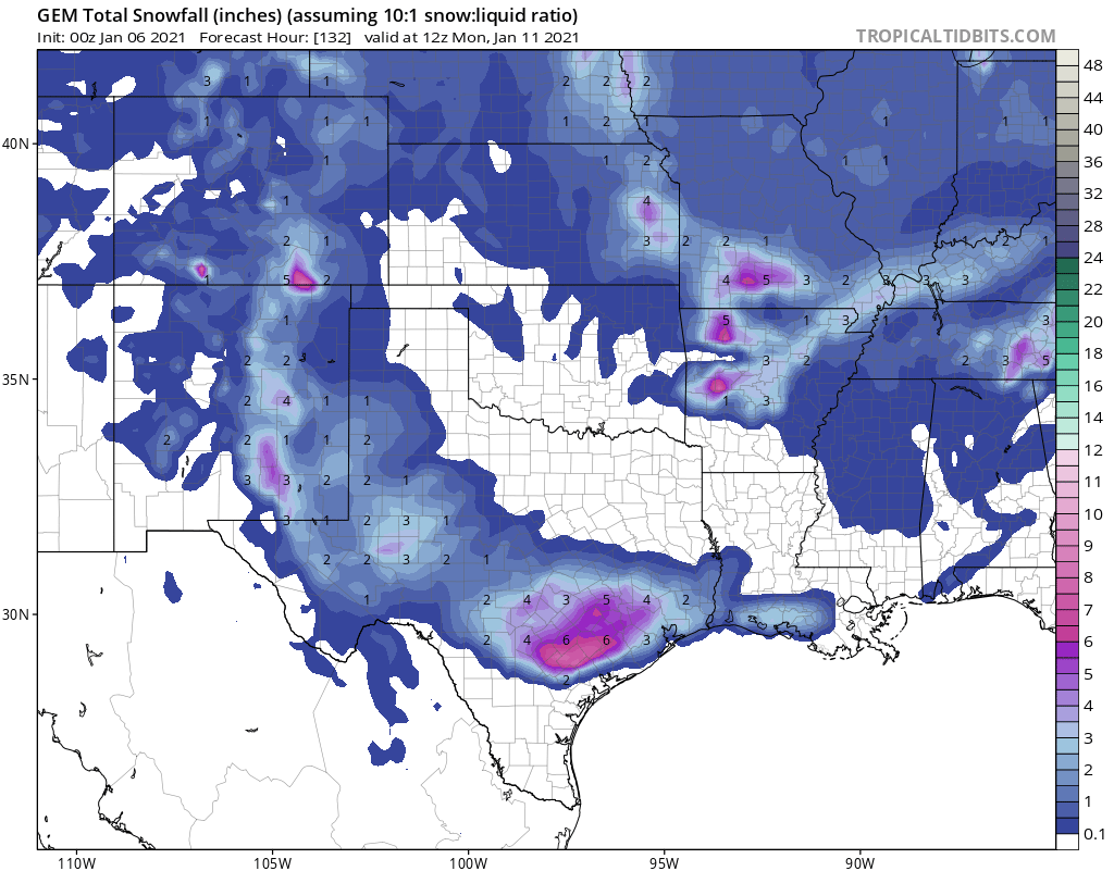 That could be the key. The next 3 days of model trends should be interesting indeed.don wrote: ↑Tue Jan 05, 2021 11:19 am 12z GFS took a big step in the right direction And looks similar to the CMC. With the gulf low further offshore. With the 540 line and 850mb freezing temps almost down to the coast with plenty of moisture overrunning. Looks like a good setup for snow down here as heavy precipitation would cause wetbulbing that could bring Temps further down at the surface and allow a transition to snow as the upper levels are plenty cold.