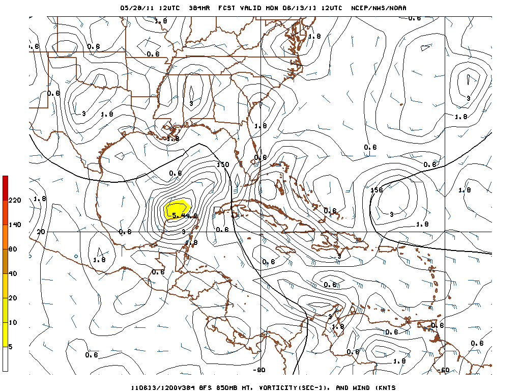 La la land 12Z GFS brings a weak disturbance into the Gulf from the Western Caribbean around mid June, for what it's worth. ;)