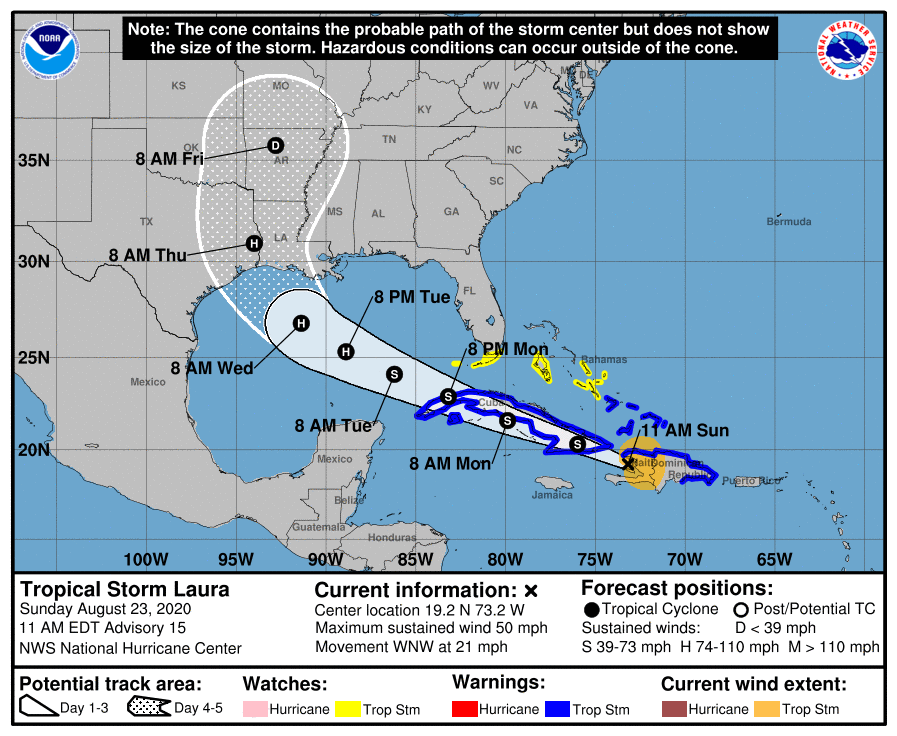 If anyone has NOT started restocking their supplies and at least started thinking about your family's Hurricane Plans, this is the day to do that. The NHC will likely have to begin Watch/Warning for Laura sometime tomorrow along portions of the Gulf Coast. I know most here are very weather savvy. I contacted my family back in Houston this morning. They're out now restocking the groceries and medications... ;)
