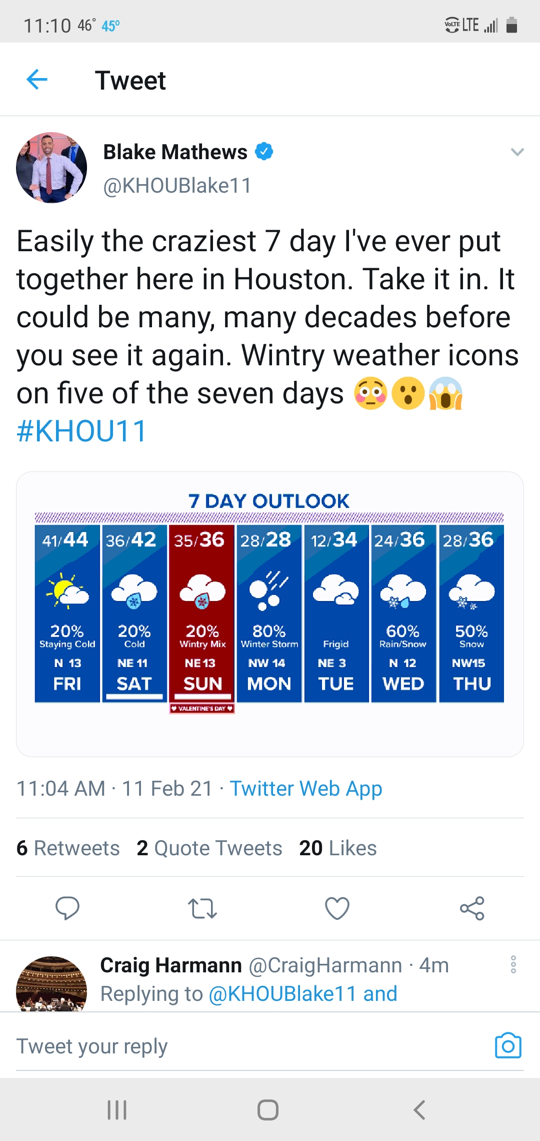 Kingwood36 wrote: Thu Feb 11, 2021 11:28 am Blake is calling for frozen precip Wed and thurs