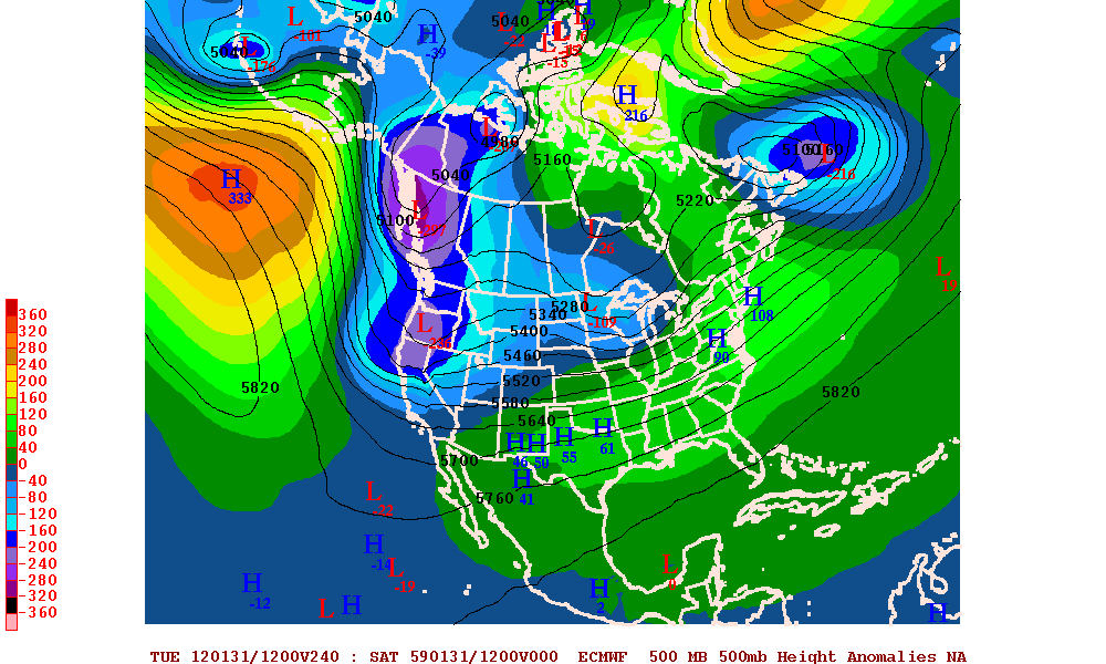 Pretty impressive North Pacific Ridge just wish it was a little farther north to completely dislodge all the cold air in Alaska but either way some impressive heights both rising in the pacific and lowering along the west coast.srainhoutx wrote:Looking ahead to the longer range, the 12Z Euro suggests a deep trough developing across the West/Intermountain West and Plains.
