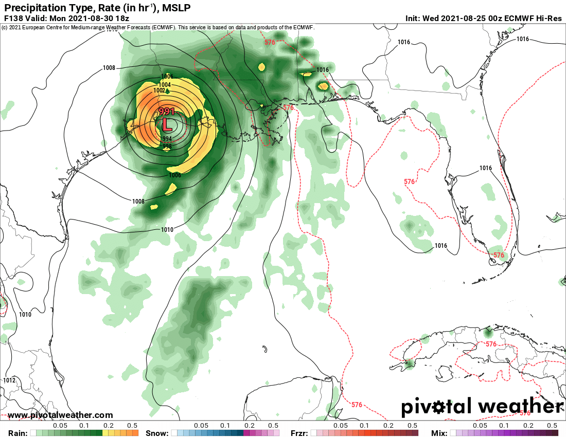 Stratton20 wrote: Wed Aug 25, 2021 2:05 am I think we are going to see a shift back to the west again with “todays runs” because the Euro shifted back west some because the ridge builds back in late and forces the storm more toward the tx/la border, but I could be wrong though of course