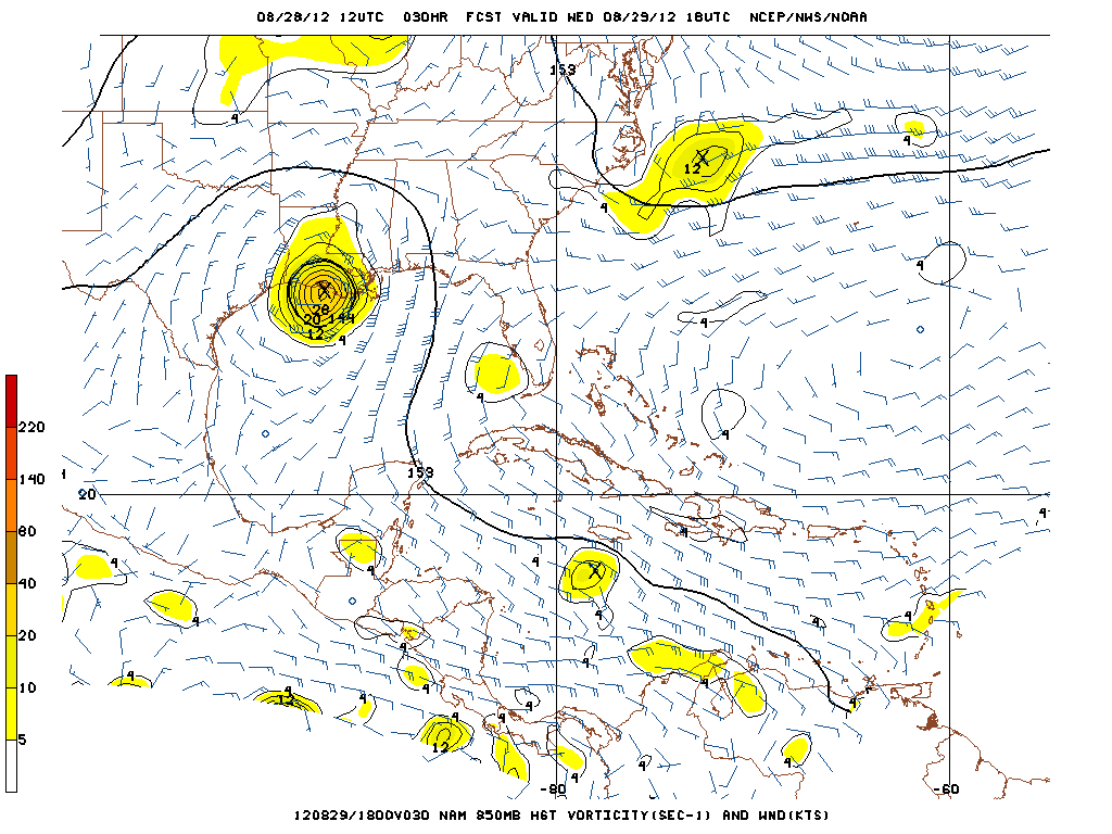 For what it's worth, the 12Z NAM suggests Isaac will hug along Coastal Louisiana heading WNW through 30 hours...