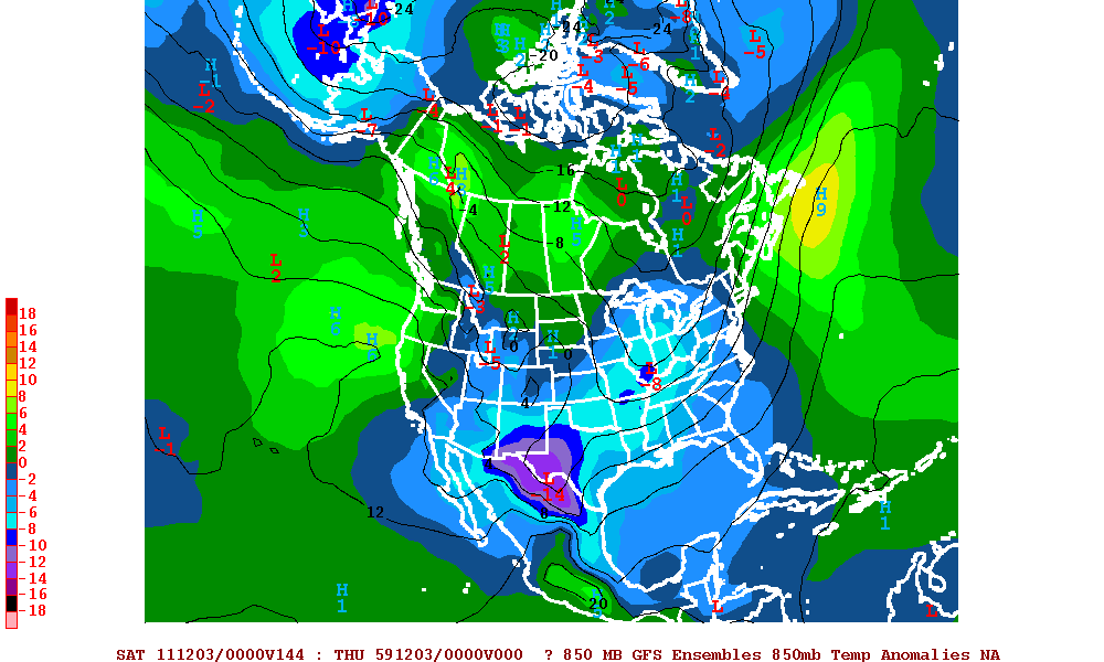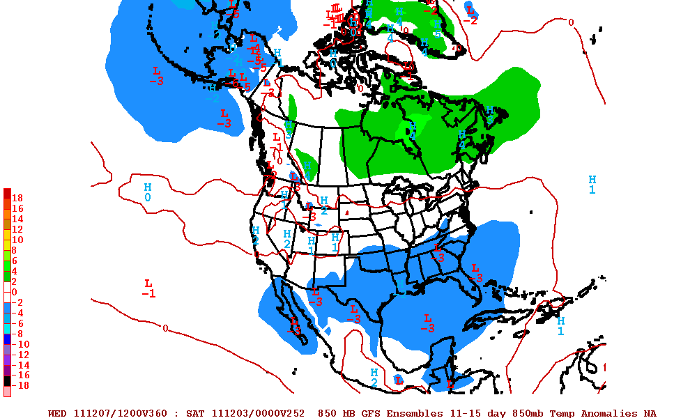 The 12Z Operation Euro and GFS Ensembles suggest it will begin to cool down as we begin December. It does appear that a +PNA regime (ridging along the W Coast and up into the Gulf of Alaska) will become established. The Alaska vortex that has been responsible for record breaking cold looks to weaken and relax and just perhaps a flow across the Arctic will replace the flow off the Pacific that we have seen for almost a month. We will see.