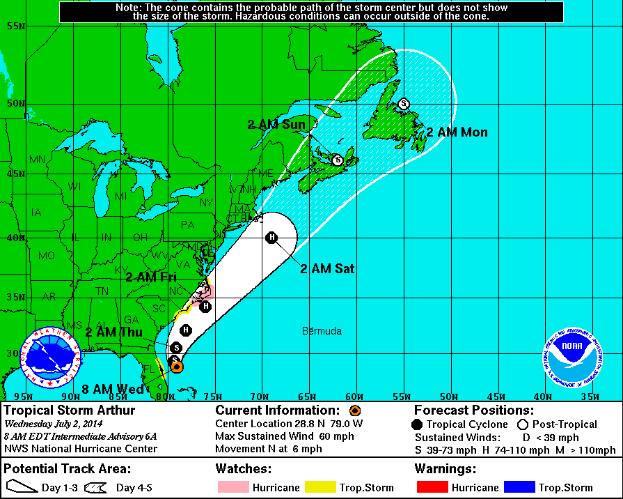 NHC's archive for hurricane Arthur, Jun 30 - Jul 5