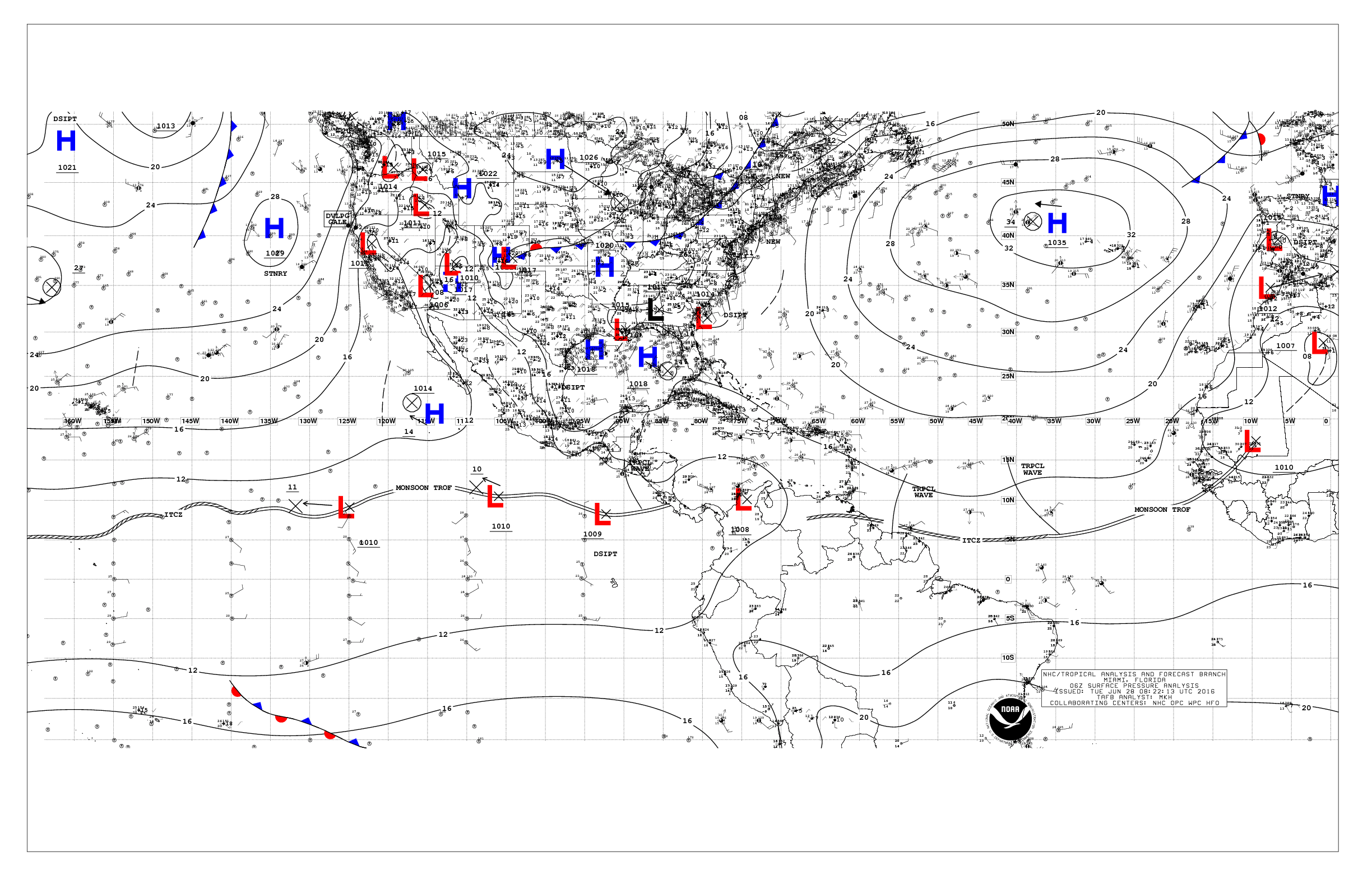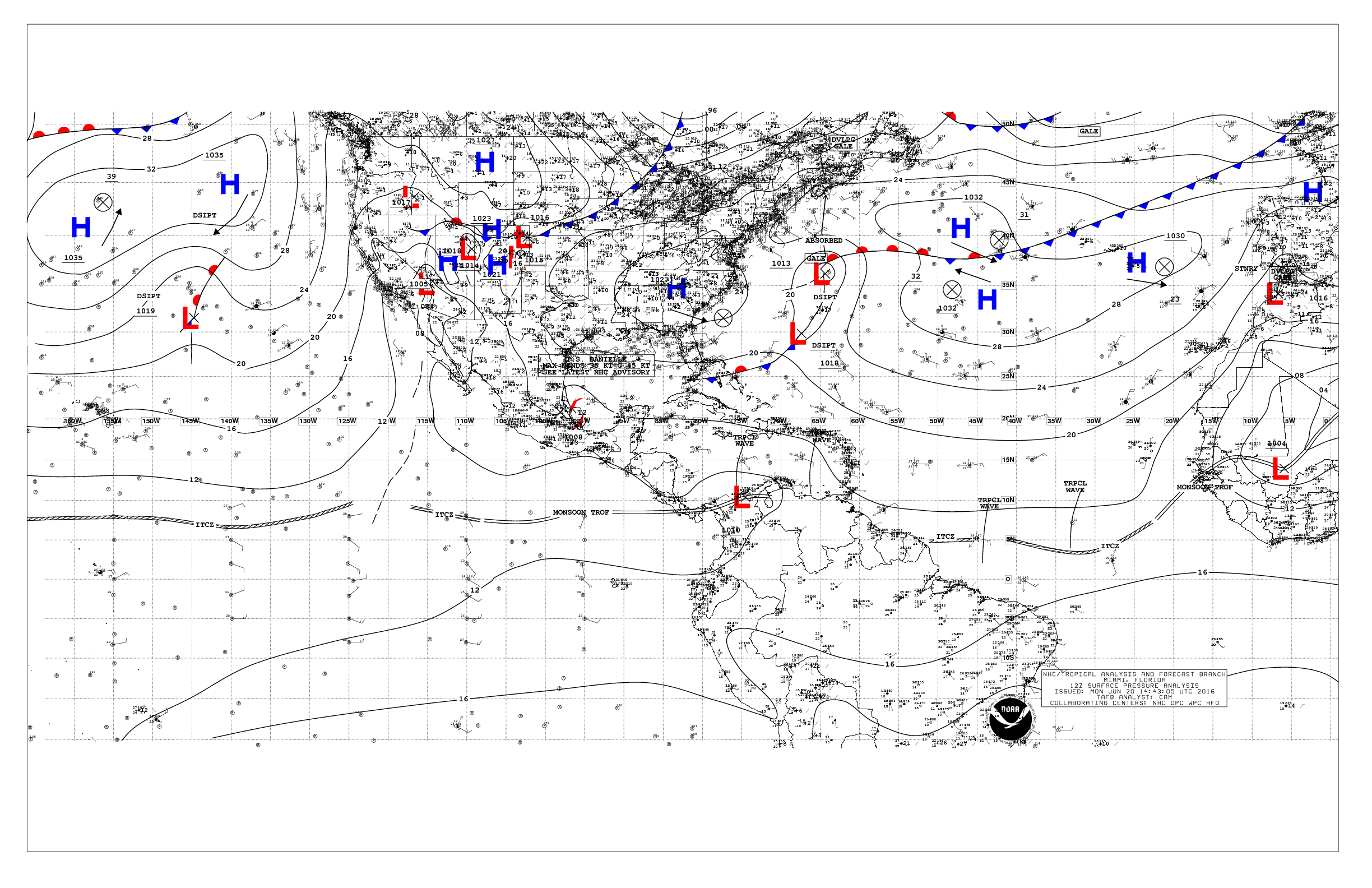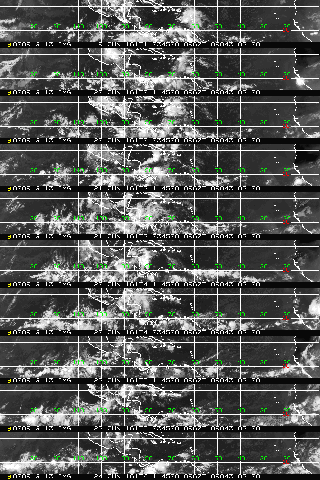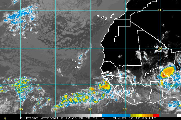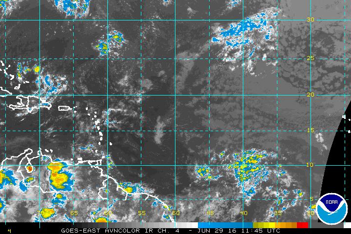 Tuesday morning Tropical analysis suggest the strong sub tropical ridge and its subsidence across the Main Development Region (MDR) continues as a couple of tropical waves move West in the mean Easterly surface flow. There is a bit more convection noticed today along the Inter Tropical Convergence Zone (ITCZ) and additional tropical waves are moving across Africa near 10 degrees latitude. African Dust or SAL continues to inhibit an influence over the Central Atlantic, but there are some indications that the West African Monsoon Season may begin in the next week or so and may decrease that Dust. An excellent tool I use and some will find it helpful as well, is Polar Orbiting Satellite imagery that provides a 48 hour loop of the Northern Hemisphere and shows the various weather features across the Globe, North of the Equator.