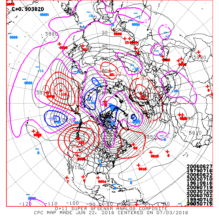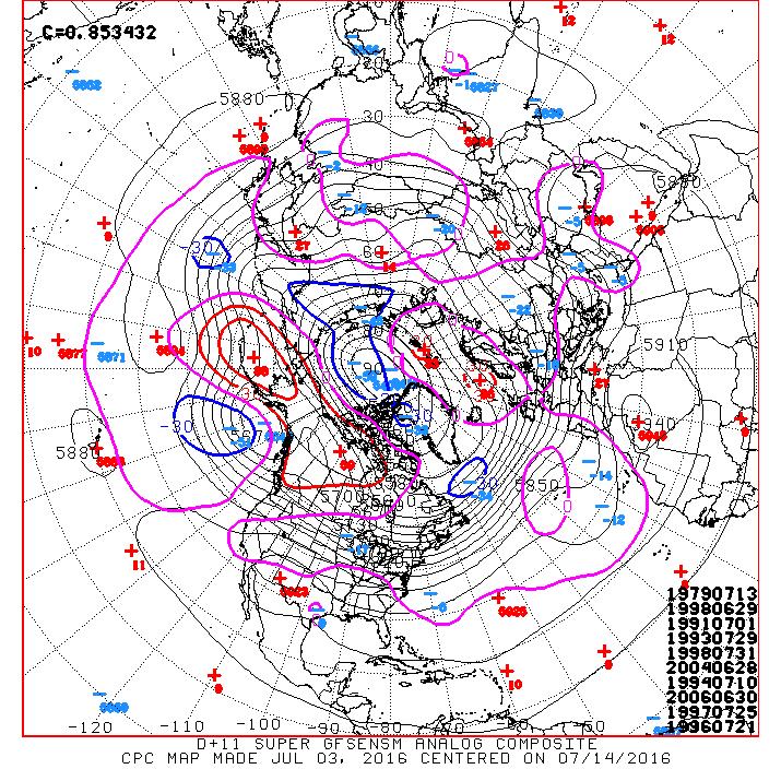 Different years and different Hemispheric Patterns that can be very complicated tend to factor into the strength of the Azores Ridge and its impact on our sensible weather. One of the visual tools that I use to show the causal weather observer is the Analogs which is basically a 'snapshot in time' of similar weather patterns that may offer clues to what we may experience when similar pattern of past years have occurred. Todays Day 11+ Analogs via the Global Forecasting System Super Ensembles (American Models and its individual ensemble Members) suggest 1979 is a good fit for today looking out a couple of weeks. These analogs vary daily, but are a good general snapshot in time of when Northern Hemispheric Patters were somewhat similar.Ounce wrote:As a side question, is it normal for High pressure to encompass the whole North Atlantic Ocean in the Summer?