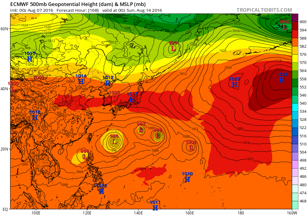 While little organized tropical development is expected across the Atlantic Basic, The Western Pacific Basin may see a flurry of Tropical Cyclones as the Madden Julian Oscillation is much more conducive in assisting tropical development in that part of the World. As time goes on and with the potential of re curving Tropical Cyclones near/East of Japan, the eventual buckling of the jet stream pattern may have implications in our part of the World over the next week to 10 days. We will cover those poten6tial implications in our August Topic as the week moves along.
