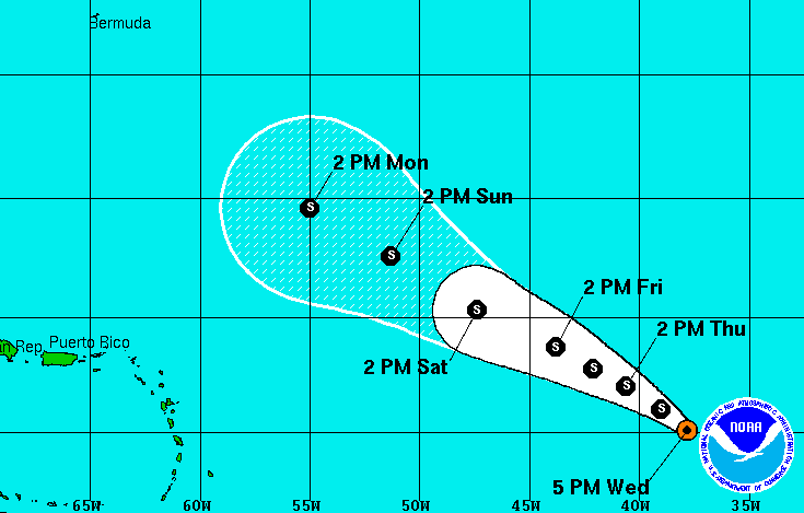 just north of Puerto Rico and the adjacent Atlantic. An area of