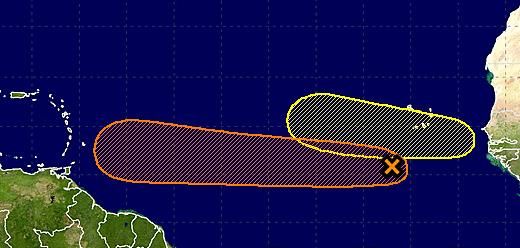 Skyguy wrote:I hate to be an alarmist, Katdaddy, but I've been talking to some fellow hobby mets, and they're not buying into the HWRF's scenario where Invest 99L curves west-northwest and northwest in the general direction of Florida. The high over it is just too strong to permit that. In their opinion, 99L is something that people from Corpus Christi to Miami will have to watch closely. Unfortunately, that includes Houston. Of course, this is speculation right now, but......Katdaddy wrote:TS Fiona remains at 45MPH and continues to head NW into the open Atlantic. Invest 99L is SW of the Cape Verdes. The NHC as Invest 99L at code orange with a 40% chance of tropical development over the next 5 days. Of interest is the potential track that heads toward the the Lesser Antilles. In addition the TW just off Africa has a slight chance of development during the next 5 days.
