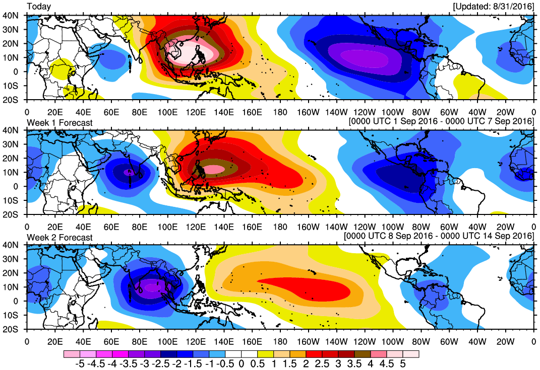 There are some 'hints' that we may need to pay a bit of attention to the Tropics particularly the SW and Western Caribbean as some of the models are attempting to spin up a disturbance later next week with a favorable MJO Pulse and a Convectively Coupled Kelvin Wave that may allow for greater rising air and increased instability across the Western Atlantic Basin. Meanwhile, we will monitor the threat to Florida and the SE United States from TD 9 as it moves out of the Gulf into the Atlantic Ocean during the Holiday Weekend.