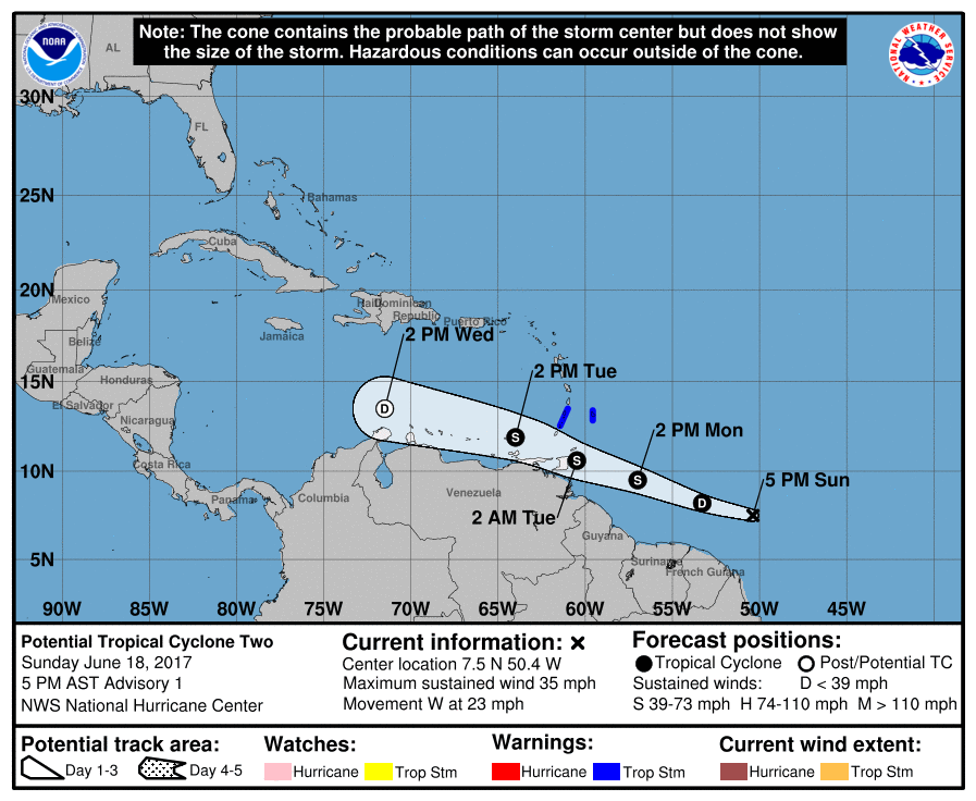 06182017 Potential TC 2 5 PM AST 205947_5day_cone_no_line_and_wind.png