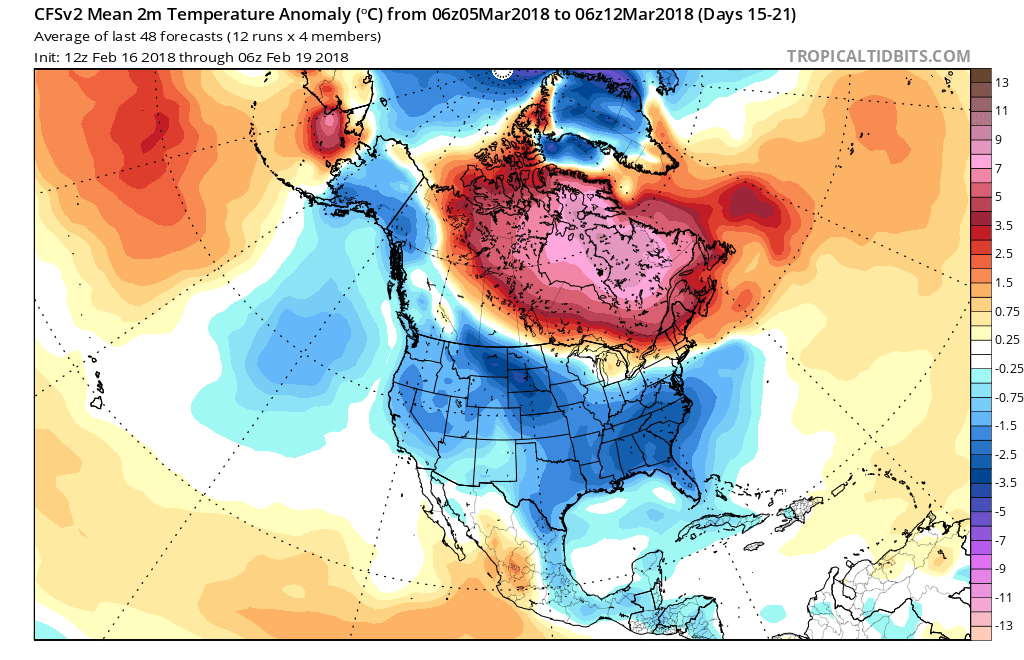 oh great...looks like more warm and muggy and rainy because that thing hasnt been accurate that far out since december.srainhoutx wrote:The Updated CFSv2 Weekly Outlooks suggest more "colder" air may arrive after the first week of March.