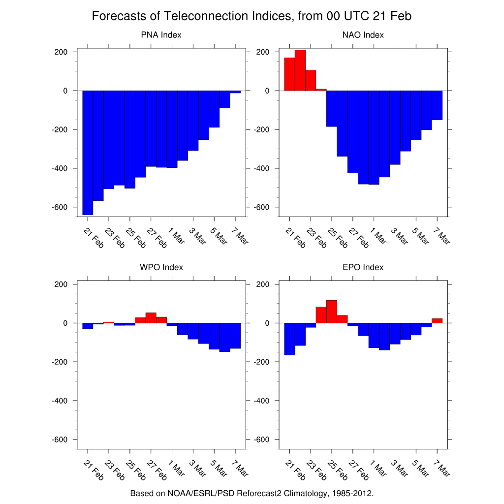 A quick update on what early March Weather may bring. Our Teleconnection Indices suggest a significant Northern Hemispheric Pattern change may be lurking with an extremely negative Arctic Oscillation and an extremely negative North Atlantic Oscillation suggesting a Bridge to Bridge Blocking Regime impacting North America. The GEFS Ensembles are 'sniffing out' this pattern change that may bring a return of "colder" weather across much of North America including where we live in Texas. It's Rodeo time in Houston and I expect both chili and chilly weather may be in the cards...