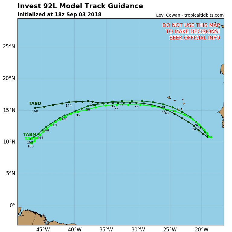 92L still has a High Chance to form into a Tropical Cyclone tonight or tomorrow (90%), but lack organization to be upgraded to a Depression at this time. The overnight models continue to advertise that a West track is likely and could well be a Caribbean Cruiser later next week. 93L just of Senegal in Western Africa likely will form first making it Helene. That would mean 92L could become Isaac. I always tend to follow the "I" name a bit more closely when the future track has it going West...