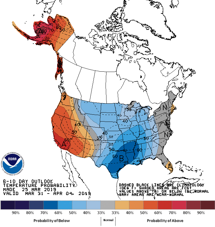 April is looking like it may start off rather chilly. The overnight guidance suggest low 40's possibly upper 30's are not out of the question for morning lows. There may be some over running clouds and showers around as April begins as well.