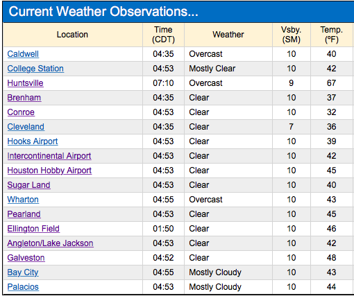 We dropped to 38F this morning in NW Harris County. If the clouds clear out, it could be a couple of degrees colder in the morning!