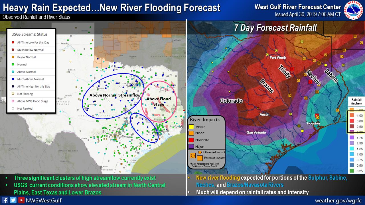 As we head into our next rain/flood event, your federal partners are working together to keep you informed. The @NWSWGRFC and @USGS_Texas have tons of valuable information, and now is the time to become familiar, before it rains! #txflood