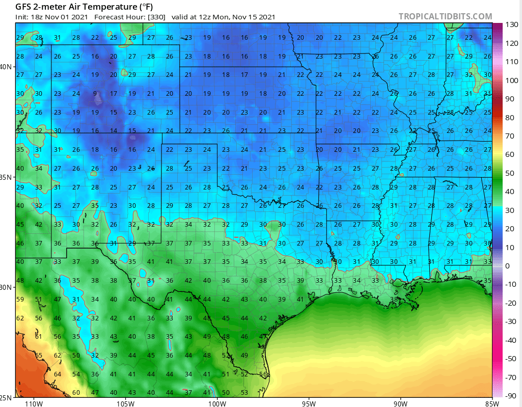 I'm keeping a very sharp eye on this, one model run had Temperatures down to the Upper Teens as lows for most of Oklahoma, which is Brutally cold for November.