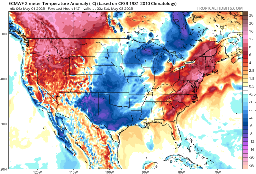 Exactly my point with my earlier questions. Something has changed - on a macro scale - for the areas S of Houston toward the coast.Cpv17 wrote: ↑Thu May 01, 2025 12:43 pmHell, at this point I’ll be happy with whatever I can get. Seems like storms are always falling apart lately as they approach our area. Whatever is happening, it’s obvious something over us isn’t conducive for rain.Stratton20 wrote: ↑Thu May 01, 2025 11:38 am next week still looks wet as disturbances rotate and move in across se texas thanks to the cut off low slowly and i mean slowly moving out of new nexico and into central texas, dont see anything too crazy ( yet) but se texas is likely in for at least a stormy 5-6 days next week