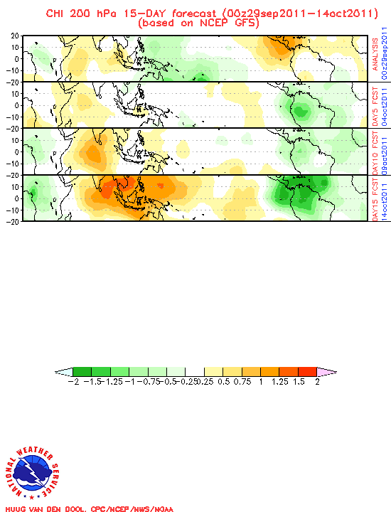 Throughout the weekend the signals have increased suggesting a change in the pattern. While we are enjoying cooler temps and the dry pattern continues, the ensembles are suggesting a rather significant change beginning next week. As mentioned earlier, the non existent MJO that we experienced for most of the summer is making a return, and in a big way. We have experienced rather weak pulses of the MJO, but that is about to change. There is a robust Kelvin wave and an MJO induced Western trough lurking in the medium/longer range. This MJO almost looks like an El Nino type pulse because of the strong nature that the ensembles are suggesting. Now what can we expect in a pattern such as this. There should be an uptick in tropical activity, first in the EPAC and then in the Western Atlantic Basin. Also, it appears that the Pacific sub tropical jet will become rather active as impulses ride along the Western trough. There is a rather strong possibility that an EPAC Hurricane or two will turn NE recurving into Mexico and points to the N and E. There are also hints of tropical development in the Western Caribbean in the not too distant future. While we in Texas are probably done with any tropical threat, eyes may need to look just to our E along Louisiana/Mississippi/Alabama/Florida areas. Our weather may begin to be affected with any activity in the EPAC as well. Typically the first couple of weeks of October are rather tranquil for Texas. With the above mentioned scenario, the second half of October may provide for a switch from the weather doldrums we have experienced for months on end. We shall see...